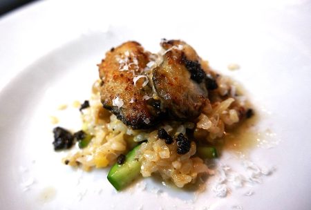 玄米リゾットにズッキーニと黒オリー