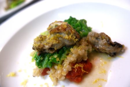 リゾットを添えて“牡蠣丼”風にする事