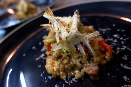 玄米とレンズ豆、大麦、小麦のリゾット。